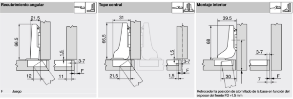 Tipo de bisagra: Se trata de una bisagra recta.