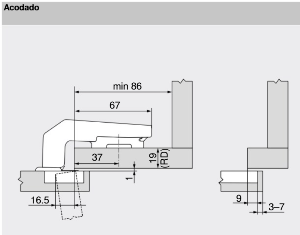 Bisagra 95º falso rincón solapada 79B9980