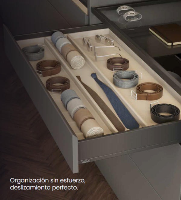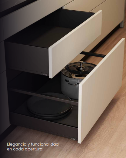 Next 4D es un cajón de apertura suave, uniforme y estable que garantiza un cierre amortiguado y un óptimo