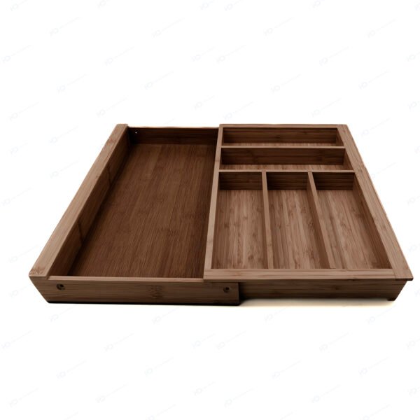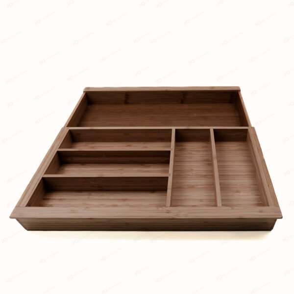 La solución definitiva para cajones de gran tamaño. Este cubiertero de bambú de gama profesional permite una organización total, extendiéndose hasta más de un metro de ancho. Ideal para cocinas gourmet que requieren espacio para cubertería completa y utensilios de gran tamaño.