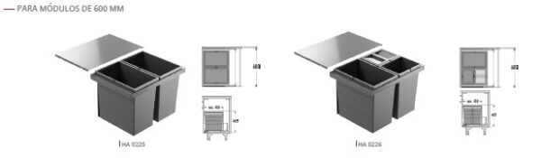 Diseño Robusto y Modular: Fabricado con materiales de alta durabilidad, su estructura sólida garantiza estabilidad al abrir y cerrar el cajón. Además, cuenta con cubetas extraíbles que facilitan la limpieza y el vaciado de los residuos.