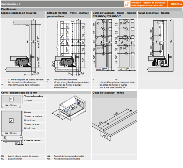 Incluye: 1 juego de guías R+L 40KG, 1 juego de laterales R+L altura F 24H, 1 juego de traseras altura F, 1 juego de fijaciones frontales y 2 juegos de tapas embellecedoras interior y exterior.