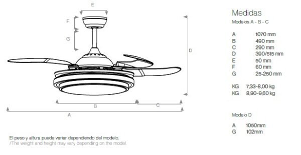 Control de 6 Velocidades: Adapta la brisa a tus necesidades exactas con 6 niveles de intensidad, desde una circulación suave hasta un flujo de aire máximo de 202 m³ (en Modelos A, B y C) o 173 m³ (en Modelo D).